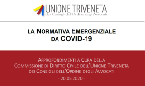 Link al documento di studio “La normativa emergenziale da COVID-19” – Approfondimenti a Cura della Commissione di Diritto Civile dell’Unione Triveneta dei Consigli dell’Ordine degli Avvocati – 20.05.2020