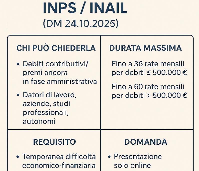 | Istruzioni operative Dilazione dei debiti contributivi INPS/INAIL fino a 60 mesi (DM 24/10/2025)
