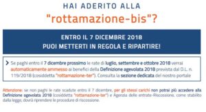 Il saldo delle tre rate costituisce il requisito indispensabile per accedere ai benefici della nuova edizione della definizione agevolata delle cartelle per i carichi affidati all’Agente della riscossione dal 1° gennaio 2000 al 31 dicembre 2017. In caso di omesso, insufficiente o tardivo versamento entro il termine del 7 dicembre 2018 delle rate della “rottamazione-bis” in scadenza nei mesi di luglio, settembre e ottobre 2018, per gli stessi carichi non si potrà più accedere alla “rottamazione ter” e Agenzia delle entrate-Riscossione, come stabilito dalla legge, dovrà riprendere le procedure di riscossione.