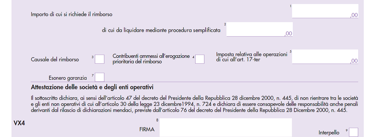 Nel rigo VX4 è stato eliminato il campo 6 riservato ai subappaltatori. L’abrogato campo 6 era riservato ai subappaltatori che nell’anno precedente avevano registrato un volume d’affari costituito per almeno l’80 per cento da prestazioni rese in esecuzione di contratti di subappalto nei confronti dei quali, per effetto dell’art. 35, comma 6-ter, del decreto-legge 4 luglio 2006, n. 223, convertito dalla legge 4 agosto 2006, n. 248 il limite annuo per la compensazione è elevato ad un milione di euro. Ora a seguito dell’innalzamento generalizzato del limite il citato campo è stato eliminato.