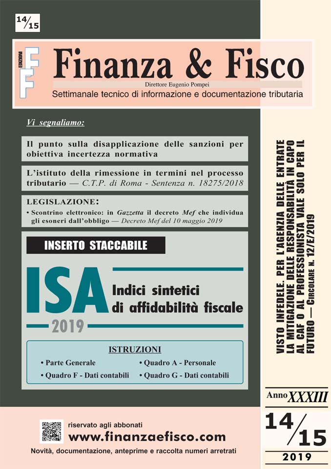 | ISA Indici sintetici di affidabilità fiscale 2019