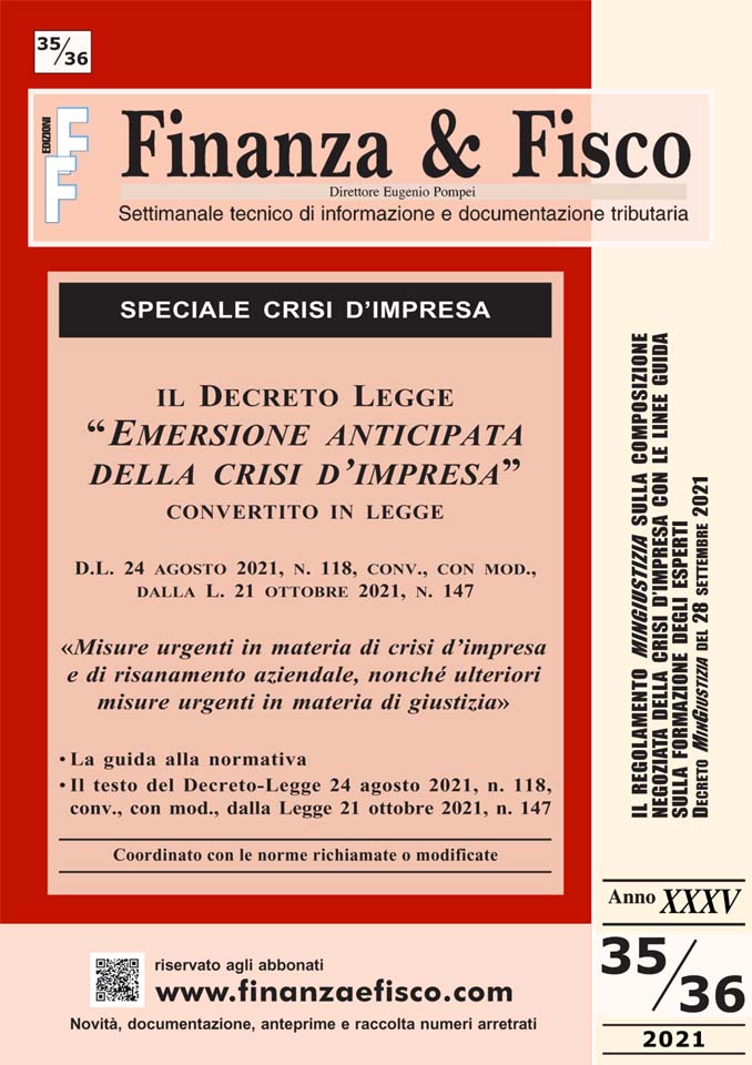 Il testo del decreto-legge 24 agosto 2021, n. 118, conv., con mod., dalla Legge 21 ottobre 2021, n. 147, recante: «Misure urgenti in materia di crisi d’impresa e di risanamento aziendale, nonché ulteriori misure urgenti in materia di giustizia»