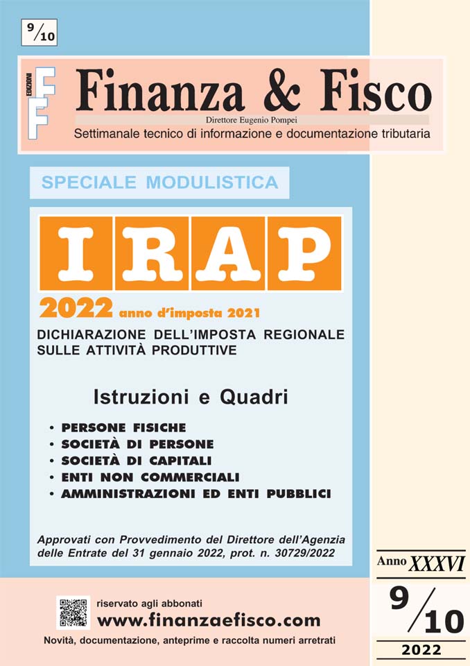 Provvedimento del Direttore dell’Agenzia delle Entrate del 31 gennaio 2022, prot. n. 30729/2022: «Approvazione del modello di dichiarazione “Irap 2022”, con le relative istruzioni, da utilizzare per la dichiarazione ai fini dell’imposta regionale sulle attività produttive (Irap) per l’anno 2021»